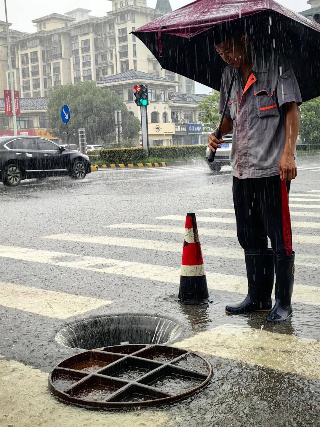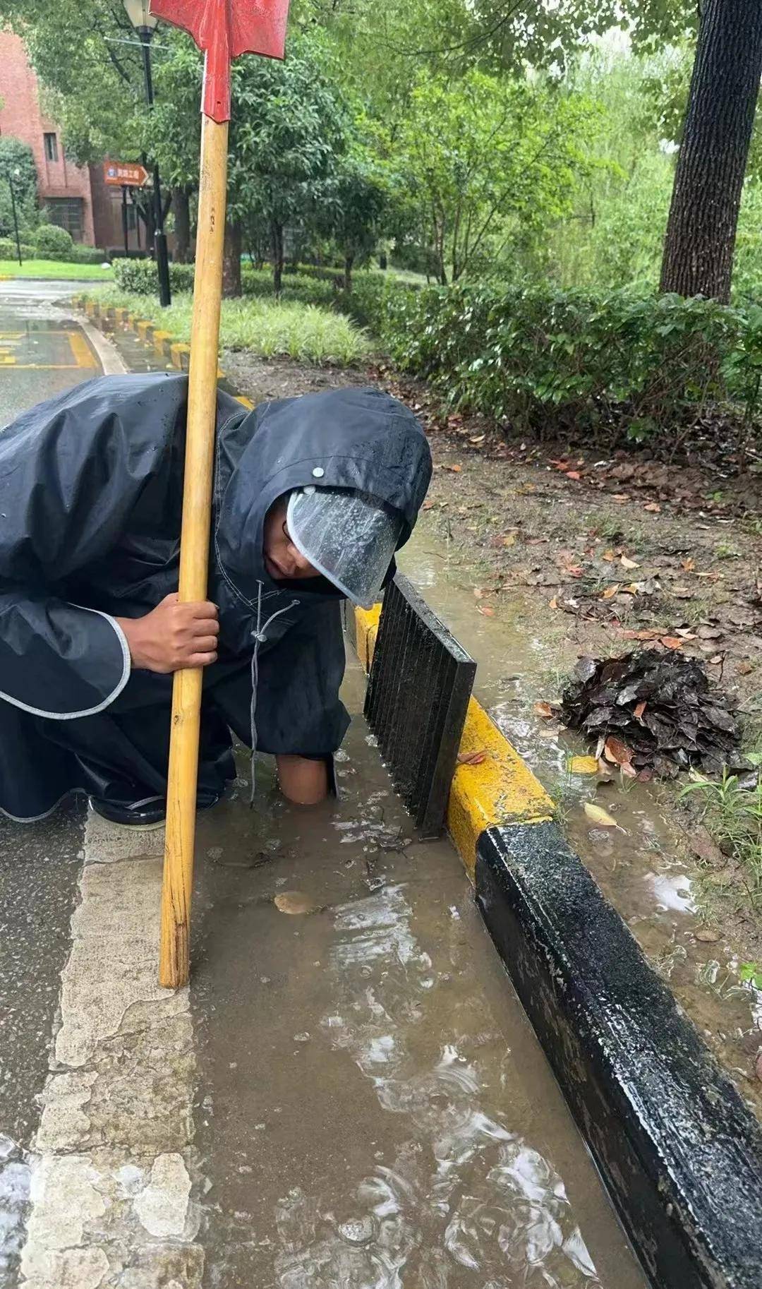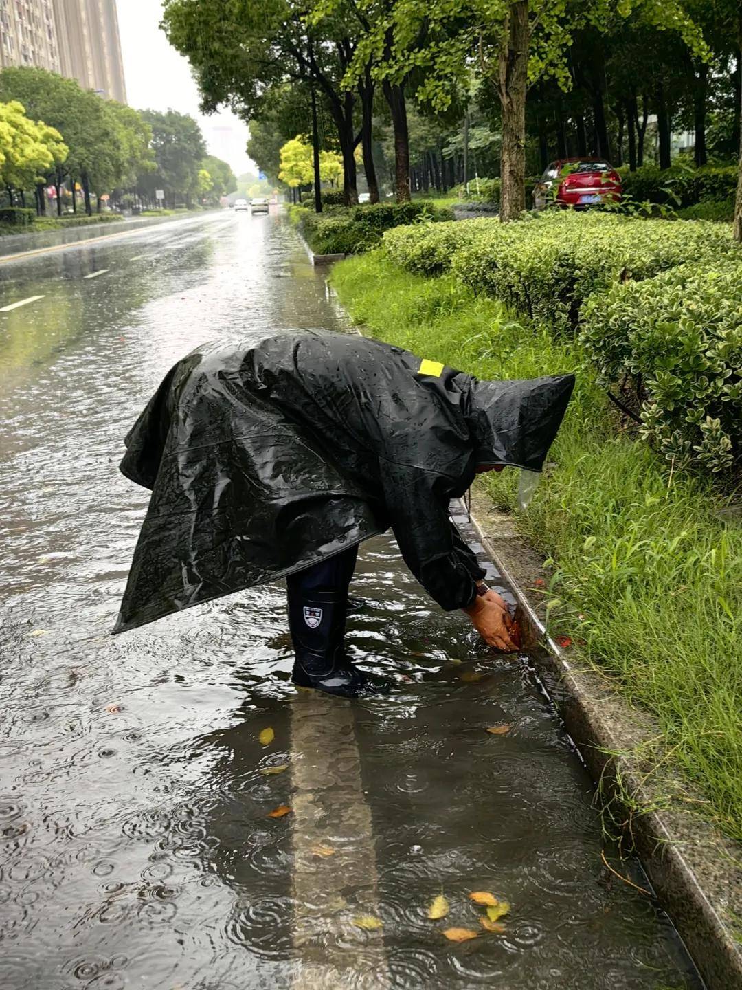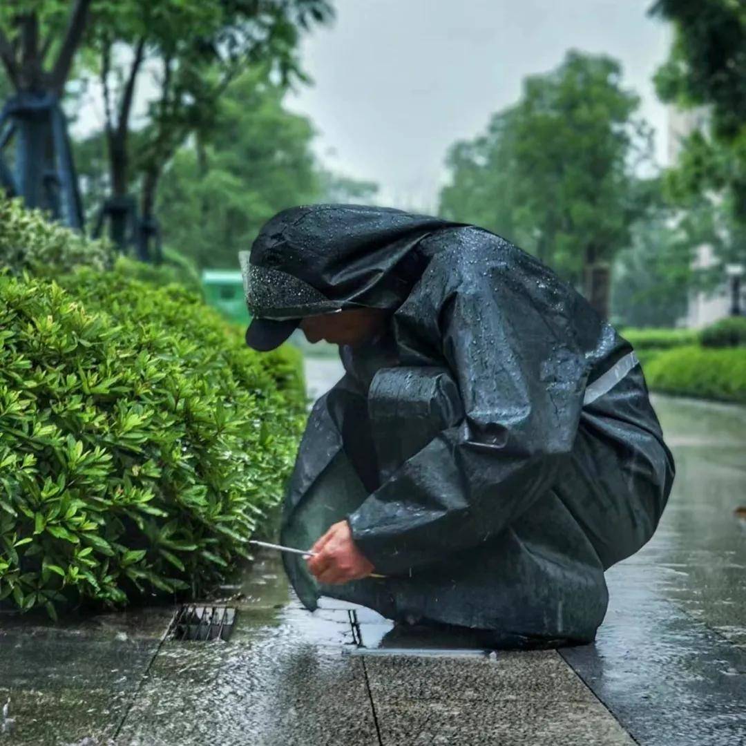 暴雨中他们的身影成为了雨幕中最醒目的标志。他们中有的拿起铁锹,开始在各个小区清理堵塞在排水口的杂物,确保雨水能够顺利排走,防止积水给居民生活带来不便。雨滴打在他们的安全帽上,发出急促的敲击声,仿佛是自然的乐章,为他们的辛勤工作奏响赞歌。
