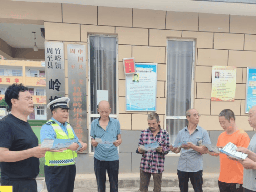 为持续深入推进夏季交通安全专项整治行动,有效发挥交通安全 宣传教育在交通安全管理工作中的先行作用,进一步提升广大群众的 交通安全意识和自我保护意识,切实预防和减少道路交通事故的发生。 2024 年 7 月 13 日 ,周至公安局交警大队深入竹峪镇岭梅村开展 “夏 季交通安全宣传”主题宣传活动。