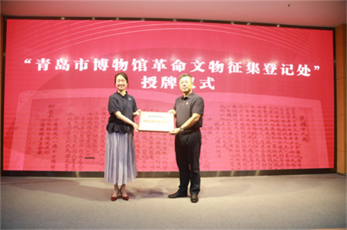 青岛市炎黄文化研究会长期以来致力于研究、弘扬中华优秀传统文化,并专门成立了青岛市炎黄文化研究会红色文化专委会,相关专家在革命文物的收藏与研究方面深耕多年。青岛市炎黄文化研究会是青岛市博物馆首个馆外革命文物征集登记处,青岛市博物馆安小蓓副馆长向青岛市炎黄文化研究会授牌。青岛市博物馆将与青岛市炎黄文化研究会在革命文物保护利用方面协同推进,展开合作。