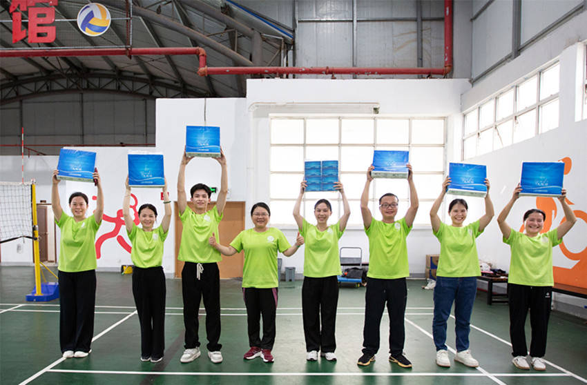 随后的羽毛球五五对决赛,将赛场气氛推向了又一个高潮。然而,十名队员同时上场,让有限空间瞬间变得拥挤,这无疑给球员们的发挥增添了几分挑战。尽管受限的场地带来了一定的困扰,大家也并没有因此而退缩,而是认真规划站位与指定策略,彻底激发出大家内心深处的斗志和潜能。