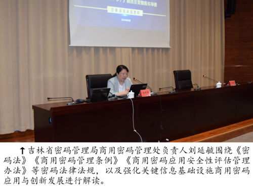 吉林省密码管理局商用密码管理处负责人刘延毓指出,本轮宣讲活动是学习贯彻《密码法》《商用密码管理条例》等密码法律法规的重要举措,也是推动全省商用密码工作的迫切需要。