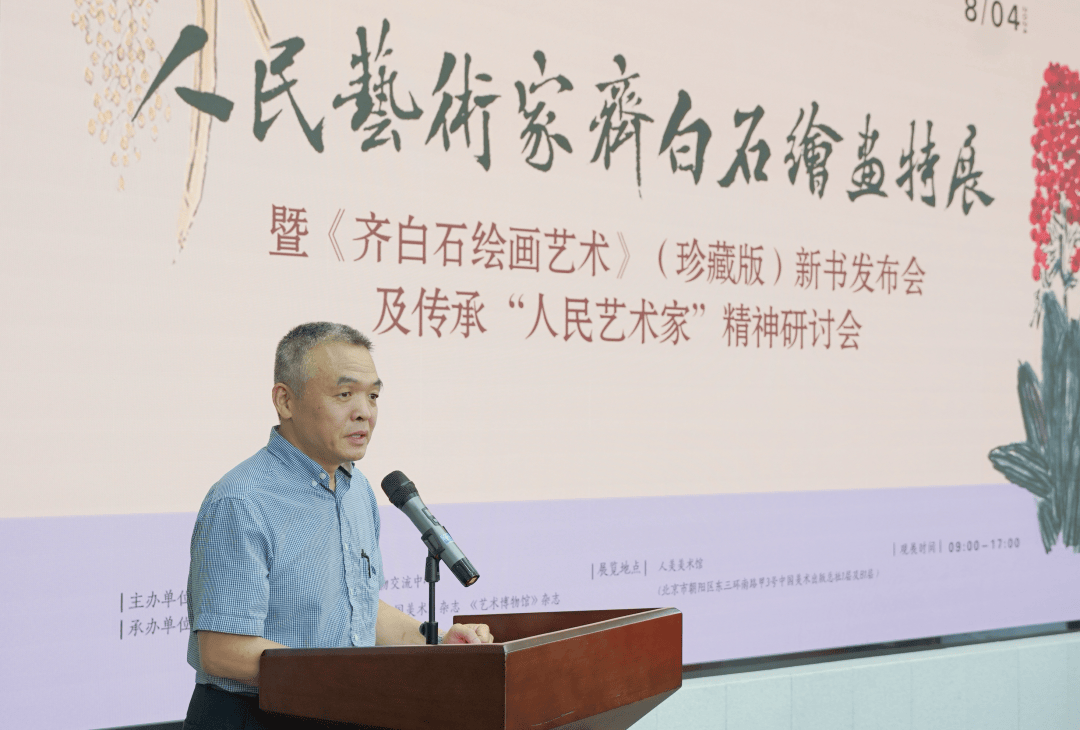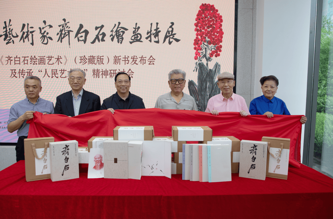 ——齐白石绘画特展”盛大开幕 《齐白石绘画艺术》(珍藏版)新书同步发布7月24日,为传承中华优秀传统文化,“人民艺术家——齐白石绘画特展”暨《齐白石绘画艺术》(珍藏版)新书发布会及传承“人民艺术家”精神研讨会系列活动,在人民美术出版社隆重开幕。中国文联原党组书记胡振民、中国出版集团总经理常勃、中宣部出版局副局长杨芳、文化和旅游部艺术司副司长何亚文、北京市文物局副局长宋豪杰等出席开幕式,人民美术出版社总编辑高世屹和社领导班子成员,中国美术馆、中国艺术研究院、北京画院、中央美术学院、北京师白艺术研究会等各界人士百余人参加开幕式。人民美术出版社总经理赖雪梅主持开幕式。