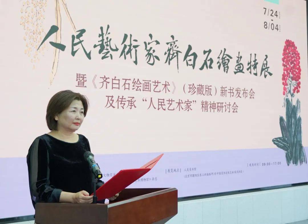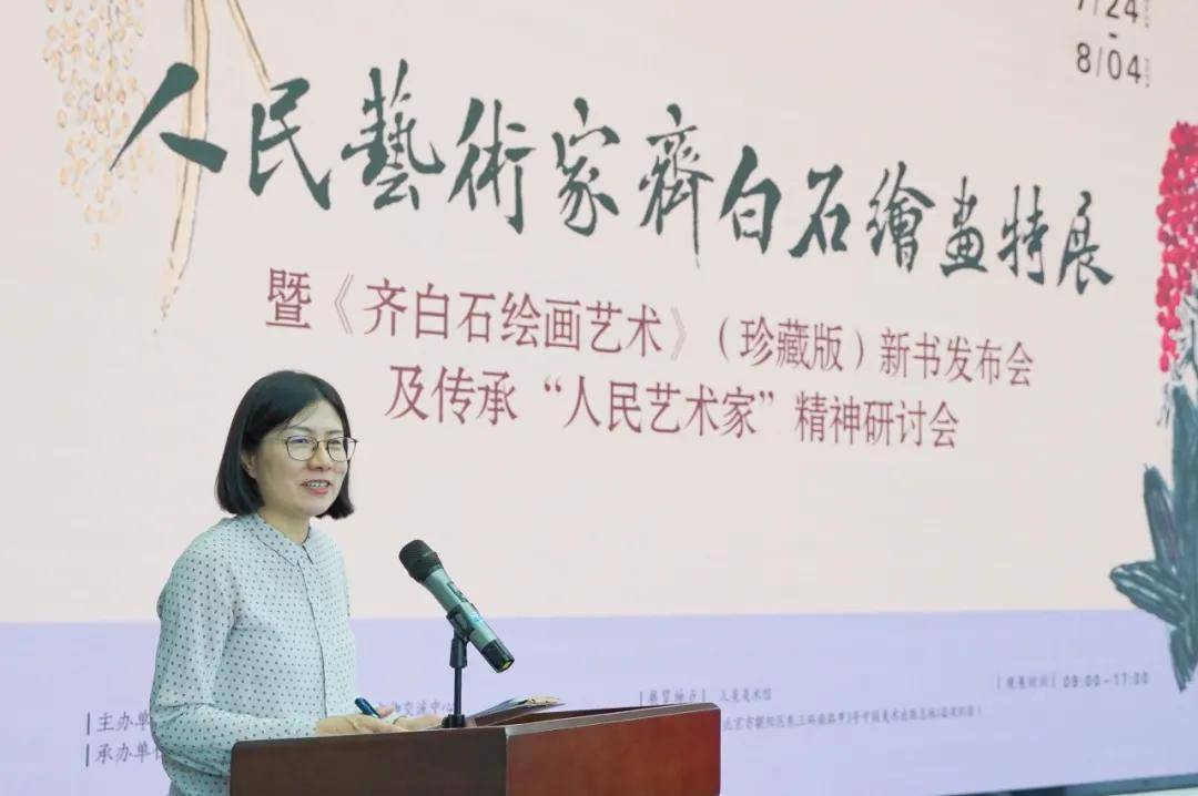 中宣部出版局副局长杨芳致辞 此次特展共分为三个部分,包括“白石风采,再现经典”、“师白传承,续写辉煌”和“课徒传承,共谱华章”, 展出包括50幅齐白石的经典原作及娄师白与娄述德的艺术作品,从中可以窥见齐派艺术的深厚底蕴和文脉传承。展览集中体现齐白石对生活的细微观察和哲理式的提炼总结,其中多件作品为首次展出;此外,娄述德重新绘制的261幅课徒画稿,有力的引导了广大观众对齐派绘画风格详细临摹和深入学习。