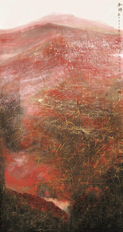 《世纪流红》宣纸水墨、丙烯 96x300cm
