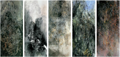 《瞬·恒》(组画)宣纸水墨、丙烯145x59cmx5