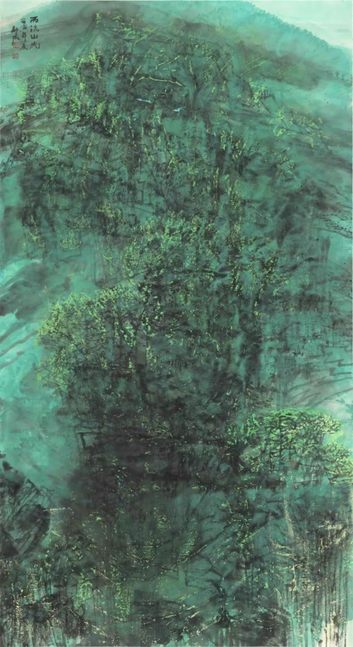 《沧桑醒绿》宣纸水墨、丙烯 96x300cm