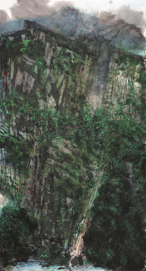 《横视苍岩》宣纸水墨、丙烯180x96cm