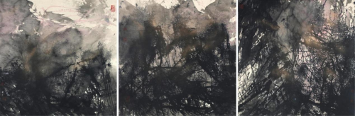 《墨色苍茫》宣纸水墨、丙烯96x96cmx3