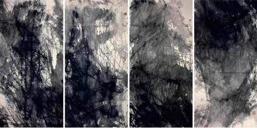 《墨聚万象》宣纸水墨、丙烯 200x96cmx4