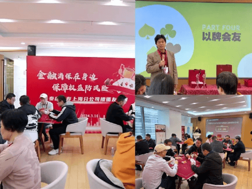 本次“爱家RUN”活动继续围绕小勇士挑战赛展开,并推出“彩虹亲子跑”、“水上爱家RUN”等活动形式,在活动现场,小朋友和家长们不仅能够享受挑战的乐趣,还能体验到健康检查、金融知识宣传等服务。 通过形式多样的内容设置,“爱家RUN”活动让小朋友们学会勇敢面对挑战,也为客户提供了亲子互动的机会,更为代理人服务客户提供了难得的平台。泰康持续用高质量的陪伴为小朋友的成长绘出幸福的底色。 活动四:泰康杯掼蛋大赛,以牌会友、欢乐无限 为进一步提升客服节整体趣味性,泰康全面启动“泰康杯掼蛋大赛”,设置六大赛区,以职场+健财中心+长寿社区为场地,探索客户经营新模式。