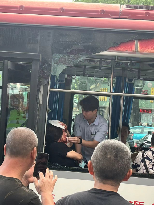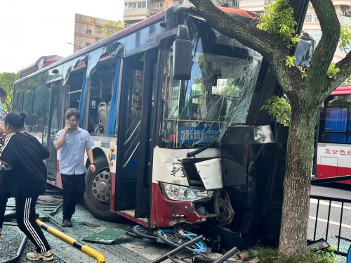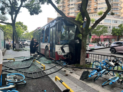 7月30日下午快5点左右,一辆23路公交车正常行驶在桥下往温州火车站方向,在行至马鞍池西路跟杏花路的交叉口时,突然一声“轰”的巨响打破了平静,公交车正面撞到了路边的灯杆上,现场车窗碎裂一地,车上人员有不同程度受伤,车上有老人满脸是血、还有人倒在地上。