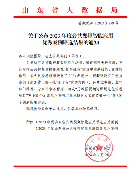 近日,山东省大数据局公布了2023年度公共视频智能应用优秀案例评选结果,日照交通能源发展集团天然气公司申报的“天然气安全生产可视化监管项目”入选山东省公共视频智能应用创新应用案例。