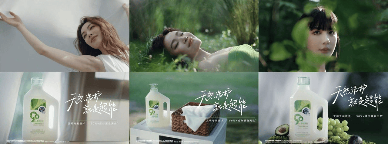 其次,《出众新品记》聚焦超能的核心诉求,把镜头对准品牌大使钟楚曦、超模氧化菊、时尚博主陶阿狗,以超能自天然新品带来的"视触嗅”的全新感官体验出发,定制了以《拥抱自天然》《呼吸自天然》《看见自天然》为主题的系列TVC,生动地呈现了她们在自天然的陪伴中“与自然共生”的治愈时刻。