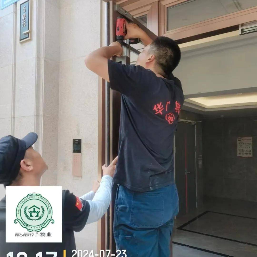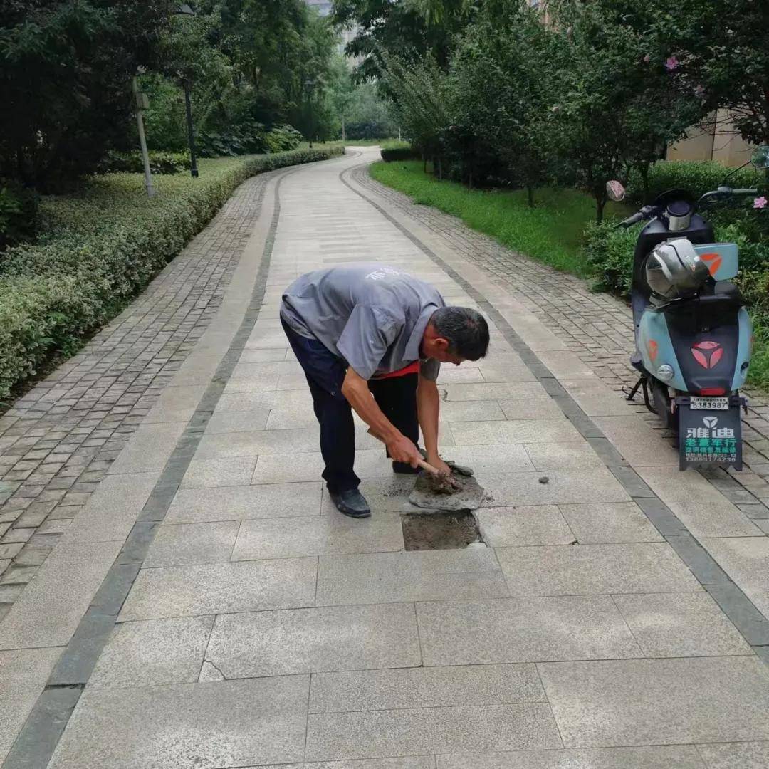工程师傅们也同样不辞辛劳。他们在酷热之下,精心修复破损的地砖,修复故障灯具及设施设备,铺地砖,通水管,确保每一项公共设施都运转正常。每一块平整的地砖、每一盏亮堂堂的楼道灯背后,都是他们无数次汗水的见证,他们的专业和勤劳保障了居民们的生活品质。