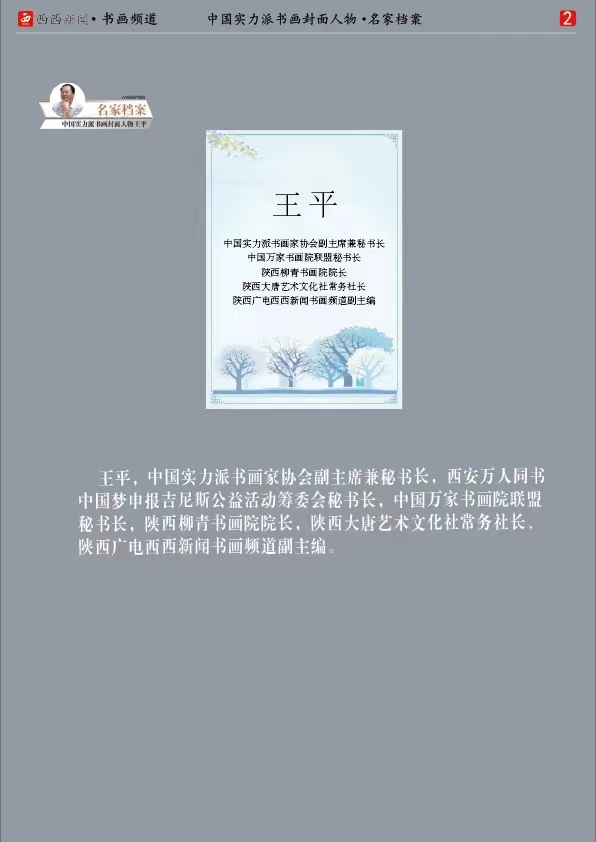 8月1日,由中国实力派书画家协会策划发起、联合多家单位在中国原点新城成功举办了庆“八一”千人同书中国梦文艺书画颁奖典礼活动,陕西著名书法家王平(子翀)再次担纲超千人书画活动总指挥。![]() 据了解,这是中实协第二次举办“千人同书中国梦”大型书画公益活动。应邀书画家、艺术家、政企界精英1000余人(实际到场两千多人)。 协会曾成功举办过2017年“二月二安康万福大鼎祈福大典”、2020年“西安汉城湖千人同书中国梦重阳祈福等系列大型公益书画活动”,弘扬中国优秀文化,讲好中国故事,向世界展示中国文化、中国精神、中国风范、中国魅力,凝聚世界力量,助力中国梦想,努力实现“西安万人同书中国梦”的终极目标! ![]() ![]() ![]() ![]() ![]() ![]() ![]() ![]() ![]() ![]() 王平,字,子翀。1964年出生于商洛,本科文化。自幼受严父教习书法,曾受多位名师教诲指点;现以行草、榜书、篆书见长。多幅作品被专业报刊发表,并多次在全国书法大赛中参展并获奖。其作品先后被录入多部书画经典编著,并获多项殊荣。现为:中国文化艺术人才协会常务理事,中国实力派书画家协会副主席兼秘书长、万家书画院联盟秘书长、陕西柳青书画院院长、陕西广电西西新闻书画频道副主编。 ![]() ![]() ![]() ![]() ![]() ![]()