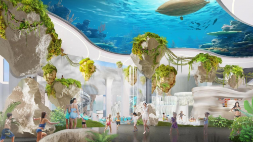 遇见山海外立面效果图 该项目作为一个郑州之内没有竞品的文旅旗舰项目,一个具备多业态与顶层设计的“超级IP”,一个来郑必打卡的颠覆性城市旅行目的地,一个城市中心区的美学灯塔与文化地标,打造了市区首个大型室内水世界,可以称之为“真正的非标项目,颠覆式的文旅新物种”。