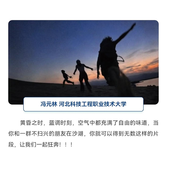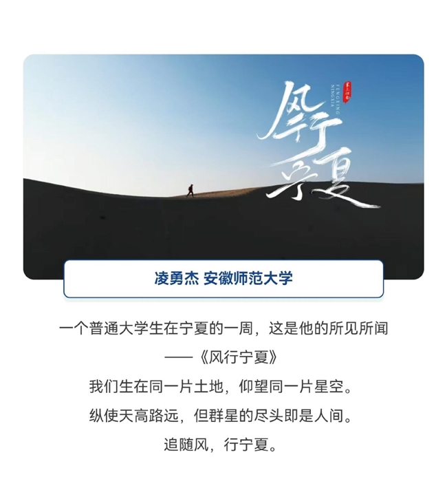 参赛作品通过独特的视角、新奇的创意、青春的表达,将宁夏的风土人情、美景美食等通过抖音、微博、小红书、微信视频号、bilibili、快手等平台进行分享。截至目前,参赛学生发布的1200余条短视频作品,相关话题总计传播量已超1.6亿次。 其中,获得“最具影响力”一等奖的冯元林同学在抖音账号发布的参赛作品《于是,我狂奔!》截至8月26日已获得点赞35余万,播放量高达300万次。他在宁夏沙湖玩得不亦乐乎,“这里沙水相依的美景,夜幕降临和朋友们迎着风在沙滩狂奔的自由,都让他印象深刻”。网友们纷纷留言,“好想去宁夏拍水灵灵的视频”“想去宁夏感受自由的风”……言语中都表达着对宁夏之旅的向往之情。