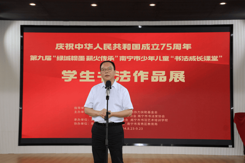 为弘扬爱国主义精神,传承中国书法传统文化,提升全民的国家自豪感和民族自信心,以实际行动表达对祖国的美好祝愿,南宁市少年儿童“书法成长课堂”2023级结业典礼暨庆祝中华人民共和国成立75周年——第九届“绿城翰墨、薪火传承”学生书法作品展,于2024年8月24日上午10:00在南宁市少年儿童图书馆举办。