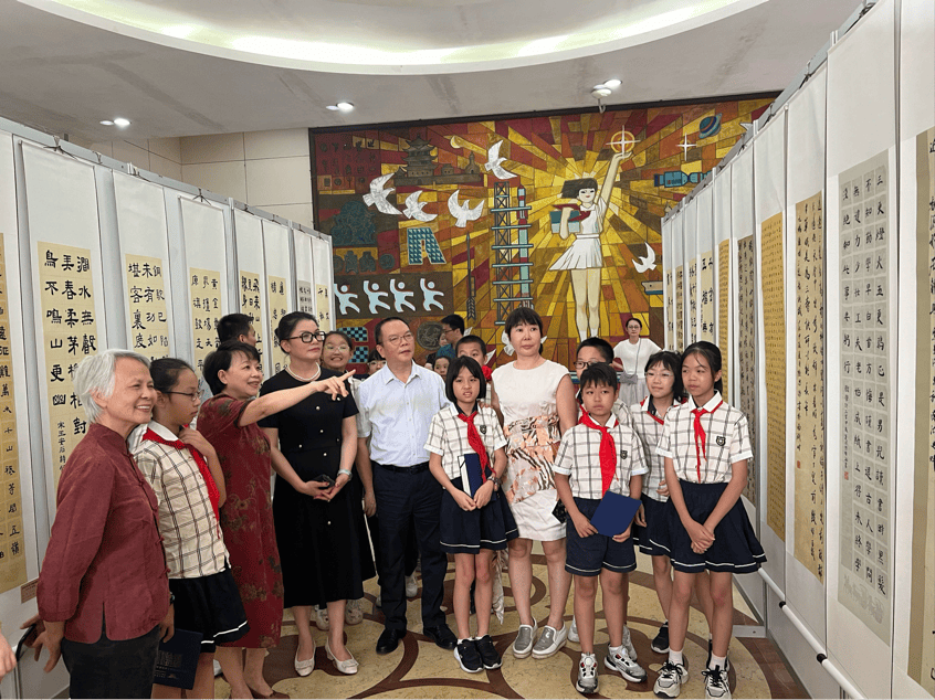 本次活动还举办了庆祝中华人民共和国成立75周年一一 第九届“绿城翰墨 薪火传承”南宁市少年儿童“书法成长课堂”学生书法作品展。展览共展出作品100余幅,全部来自“书法成长课堂”2023级及历届学生今年的创作。作品书体多样,涵盖汉隶、唐楷、二王小楷、行书等,内容丰富,既有诗词联句,也有格言名言,每一幅作品都透露出孩子们对党、对祖国、对人民、对家乡的深厚情感。