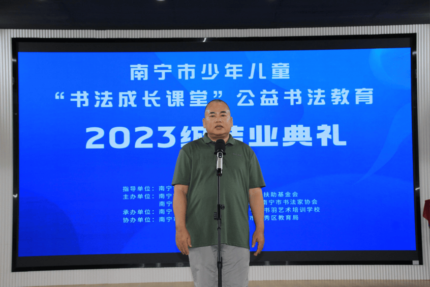 南宁市少年儿童图书馆副馆长陆庆在致辞中表示:希望同学们能够将在课堂上学到的书法技巧和领悟到的书法精神,融入到今后的学习和生活中。继续保持对书法的热爱,不断学习,让书法成为你们生活中的一部分,成为你们表达情感、展现个性的独特方式,在未来的人生道路上,如同你们笔下的书法一样,刚劲有力,精彩纷呈!