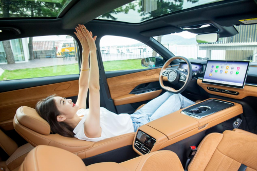 作为合资首款REEV增程式动力B级轿车,EZ-6搭载了新一代超集电驱和智能增程系统,最大功率160KW,高度集成电机最高效率达到95%。1.5L深度阿特金森循环增程专用发动机,拥有12.5:1的超高压缩比,配合28轮次燃烧系统,热效高,油电转化系数>3.3KWh/L。3.3KW的外放电功率,在海滨露营时,既可烧水、煮咖啡、吃火锅,也可做菜、照明,打开掀背尾门,支起车尾帐篷,调整座舱至露营模式,就可为你打造一场美好的户外之旅。 自在出行,全场景智能更成熟 城市交通的参与者越来越多,但智能化的日益成熟,让出行变得越来越自在简单。在智能化领域,EZ-6以为用户提供成熟、优质、适度领先的“行泊一体”方案为目标,将中国品牌领先的智能化技术首次引入合资新能源产品,全面协助用户接管都市通勤场景和高速出行场景,以更成熟、更稳定的技术沉淀让用户出行更加安全轻松。