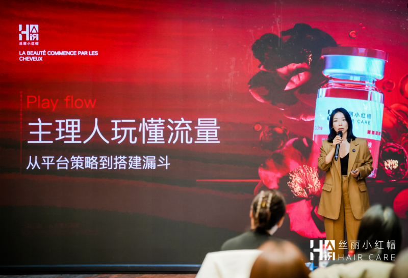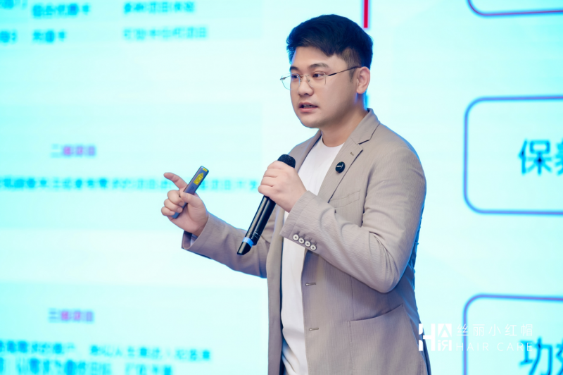 丝丽小红帽创始人 宫相青 会议伊始,丝丽小红帽作为生发养发领域的头部品牌,以其卓越的产品功效和强大的运营团队,在市场上已崭露头角。创始人宫相青先生深刻剖析了当前头皮养护领域所面临的市场挑战,当前美业市场竞争日趋激烈,获客成本逐渐变高,复购率低迷,导致门店运营压力巨大。他指出,面对市场困局,传统头皮养护门店和单纯护肤型门店务必突破固有模式,积极接纳新技术、新趋势,才能满足顾客个性且多样化的需求。丝丽小红帽作为To B+C的头皮护理品牌,强势入局生美赛道。承诺为所有合作伙伴提供“产品+流量”的双重赋能策略,由品牌自身承担风险保障角色,有效降低了合作机构在尝试新项目时可能遭遇的不确定性。全方位的展示了丝丽小红帽的核心优势。