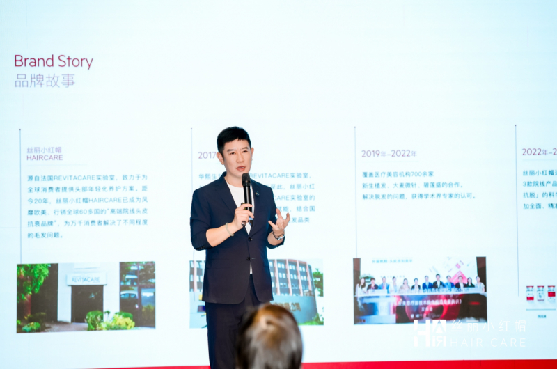 丝丽小红帽美业销售部负责人 任博 丝丽小红帽美业销售部负责人任博为大家讲解了丝丽小红帽提供的两种合作模式,即联名方案和加盟方案。作为头皮专业领域头部品牌,丝丽小红帽拥有华熙生物和法国 Revitacare 双背书,自带流量。此外,从店铺选址、装修设计到人员培训、市场推广,每一个环节都有专业团队提供一对一指导,专业医学背景团队提供全程扶持,运营和督导团队持续跟进,以确保各位合作伙伴轻松开店快速盈利。丝丽小红帽积极的市场拓展态势,不仅为加盟商提供了优质创业机遇,更为广大消费者带来了专业、高效的头皮护理新选择。