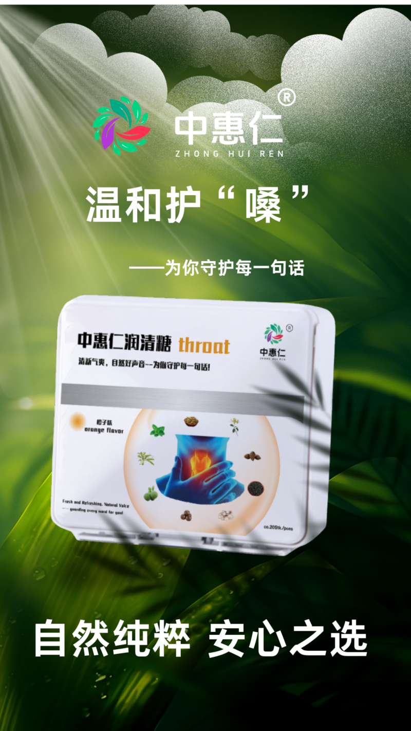 在食品领域,中惠仁推出了两款备受青睐的产品:润喉糖与淬灵液。润喉糖精选天然草本原料,温和滋润,有效缓解咽喉不适,是您日常护嗓的理想选择;淬灵液则萃取天然植物精华,帮助提升身体机能,助力自我升华,为您的健康注入源源不断的活力。这两款产品均以“药食同源”为理念,将传统智慧与现代工艺相结合,为您带来天然、安全的健康体验。