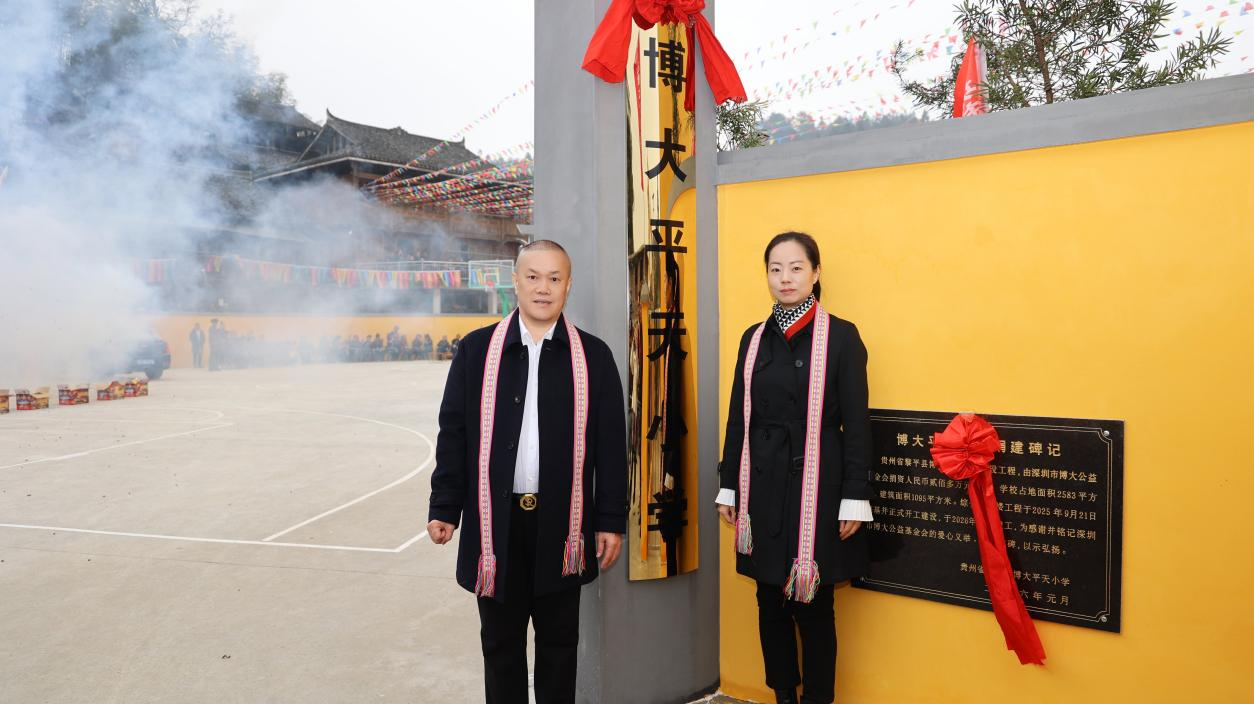 崭新的教学楼矗立山间,配套球场绿意盎然,明亮的教室里书声可期,处处涌动着蓬勃生机与美好希望。2026年1月19日,由深圳市博大公益基金会全额捐资捐建的贵州省黎平县博大平天小学正式投入使用。作为基金会在黎平县捐建的第七所希望小学,该校的落成启用,不仅续写了博大连续十年助力当地教育的爱心篇章,更让革命老区的孩子们迎来了优质学习环境,为黎平乡村教育事业发展再添新翼。
