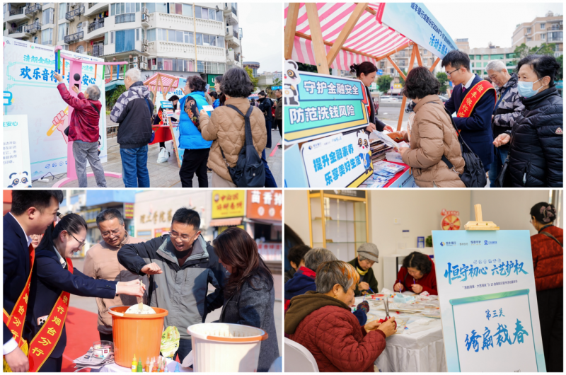 文化赋能·古韵融贯宣教 以传统文化与地方非遗、民俗为底色,将沉浸式文化体验融入金融知识宣传教育。总行在济南百花洲设置主会场,通过“礼定方圆 圈中识诈”“欢乐音符 接住安心”等“六艺”互动游戏,让消费者在趣味体验中学习掌握金融知识,了解传统文化,活动同步开启线上直播,通过数字化手段扩大活动覆盖面和影响力。苏州分行创新融合苏州园林、评弹、苏绣等六大传统文化元素,打造“苏韵消保 六艺闯关”特色体验,参与者在“游园闯关”中既能感受传统文化的魅力,又能在互动中轻松学知识、辨风险、守权益。北京分行举办消保公益市集活动,依托“消保市集+文艺汇演”的沉浸式宣教场景,引导市民游客积极参与“六艺”消保闯关游戏,在感受传统文化魅力的同时,熟练掌握反诈防非等金融知识。杭州分行创新融合宋韵文化与数字经济特色,以“宋韵+消保+数字”模式,将传统“六艺”与金融知识精准融合,实现“玩中学、学中用”。南京分行在历史文化街区南京老东门将金融知识宣传与灯会场景深度融合,打造“六艺闯关-盖章集章-现场兑礼”的沉浸式游园路线,现场兑换的“清醒水”“反诈包”让消保知识润物无声地走进大家心底。