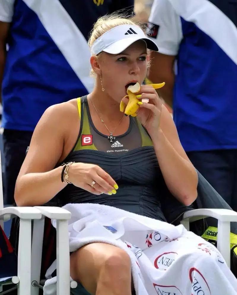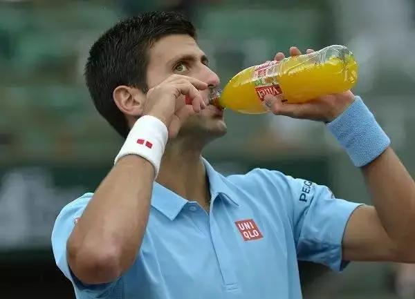 4.能量补充品 一场网球比赛经常耗时2-4个小时,在如此高强度的运动下要是不补充能量那就离休克不远了。一般运动员都会带自己兑的饮料(多呈黄色),饮料基本上就是依云水加上一些高能量的东西,香蕉也是很多运动员钟爱之物。