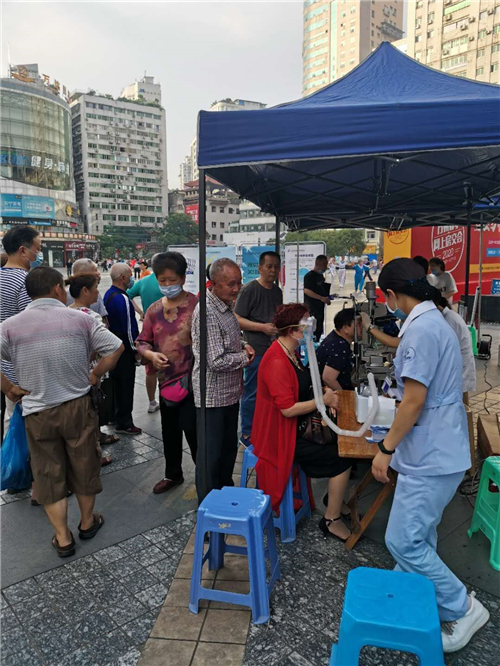这是在万州区卫健委主办,万州区盲人协会、中国雷锋报万州工作站、欧菲雅口腔协办,万州爱瑞阳光阳科医院承办的“视觉2020,关注普遍的眼健康”为主题的第25次全国爱眼日活动上呈现的一幕。
