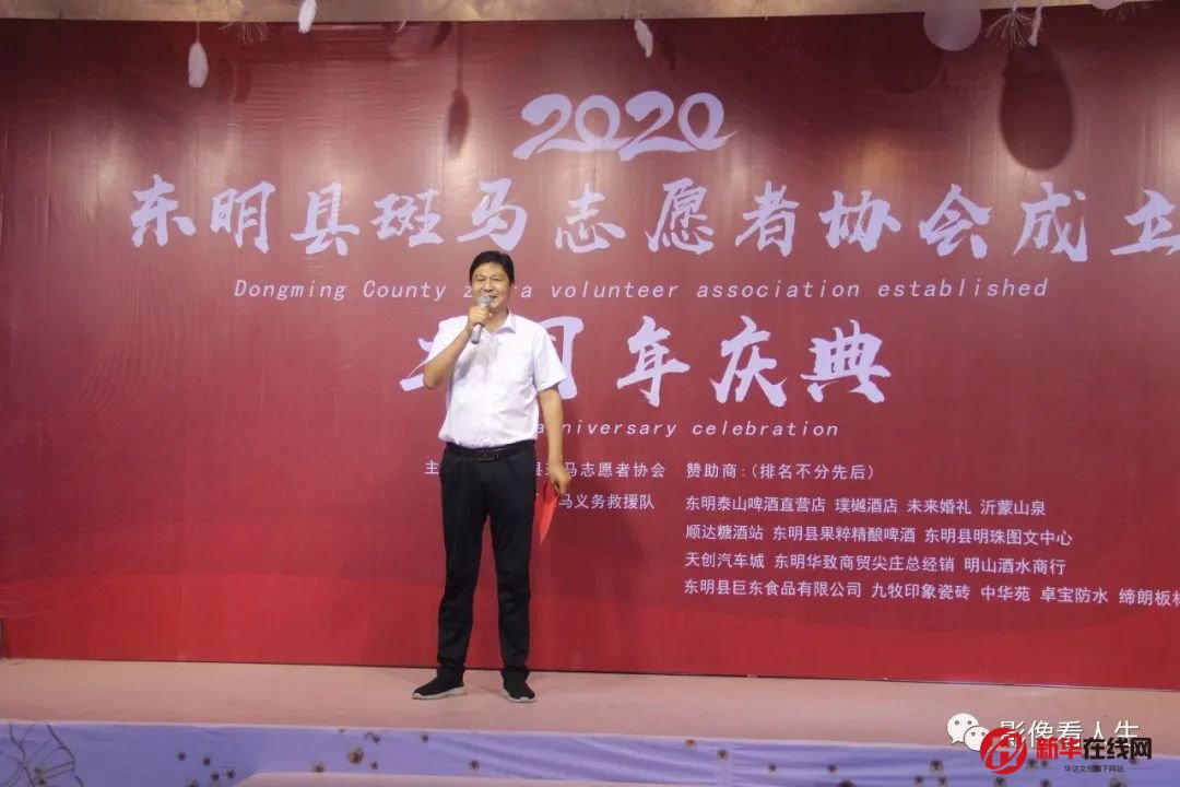 东明县斑马志愿者协会大队长 王雨增在致辞中首先向在百忙中 来到庆典现场的 各位领导、嘉宾、媒体朋友和 全体斑马家人表示问候和欢迎