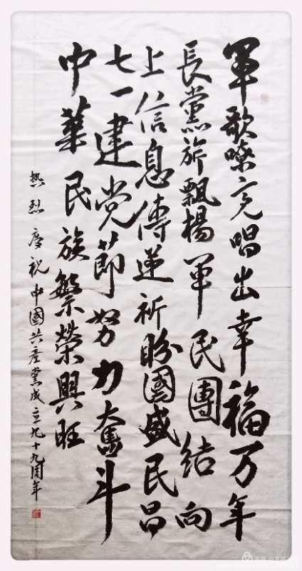 近日,为纪念建党99周年,唐山艺术精英公益诗书画苑爱心书画家王世平组织了 以“翰墨丹青颂党恩,永远一心跟党走”为主题网络书画展活动。