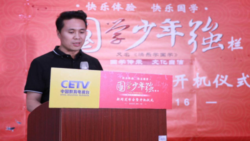 在开机仪式上,中国教育电视台品牌营销中心主管应杰、《国学少年强》总制片人张有训、总导演赵风云、总策划郑浙平共同启动《国学少年强》栏目开机仪式。据悉,节目制作备播完成后,《国学少年强》栏目将在中国教育电视台一频道黄金时间播出。