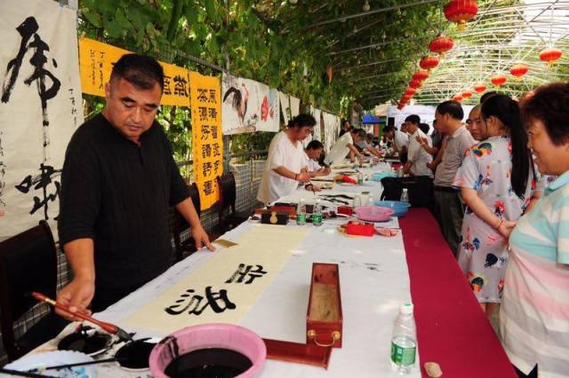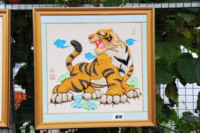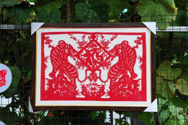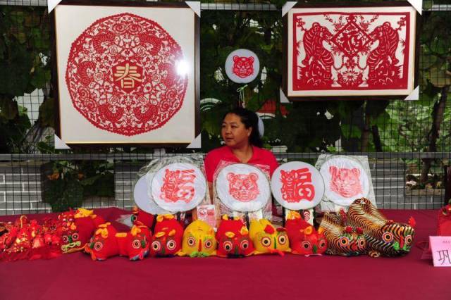 在当天下午的活动现场,12位书画家现场写虎、画虎,不同的虎字、虎像跃然纸上,生龙活虎。不少村民及游客现场“点将”,请书画家们即兴创作。在书画区对面,当地巧娘们则展现的是另一种“虎头虎脑”的虎风采,虎枕、虎帽、虎鞋、虎扇、虎形象的糖人……巧娘们精湛、淳朴的手艺,引来不少游客观看购买。当地民间艺术家“剪纸三舅”郭升臣,则展现了中国传统剪纸文化和虎文化的完美结合,具有浓郁中国味的“剪纸虎”现场赠送给游客,吸引了不少孩子参与体验。