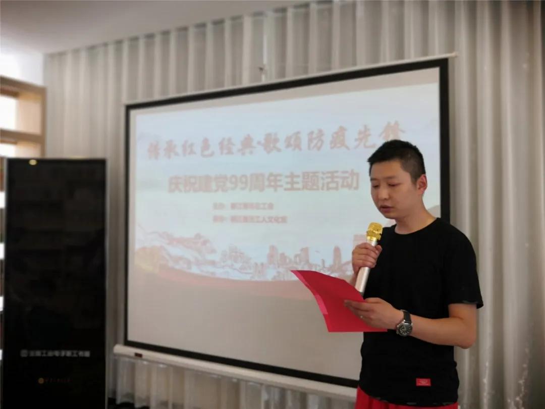 在伟大的中国共产党成立99周年之际,各企业党员职工代表在这里以红色文化阅读形式为党庆生,党员们一起重温入党誓词。 朗诵《党旗颂》 九十九载岁月如歌,风云激荡 九十九年征帆高悬,乘风破浪 当鲜红的党旗迎风飘扬 青春的热血在这里燃烧