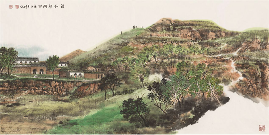 这种实景式的山水肌理效果,是李呈修长期于实地写生与深度体验生活中不断摸索与实践的重要成果之一,长久以来以“贴近现实、注重生活”为创作主旨的李呈修,将“长征式写生”贯彻得尤为深入,他不断深入山区、大漠、高原实地写生,深入古镇、乡村、农户体验生活,在不断扎实地积攒着艺术养分和拓新的基础,大胆地将色彩、造型、速写等绘画功底优势应用其中,在强化技法的同时,最终在实景写生中摸索与提炼出独立的表现手法与绘画语言,其间过程非坚苦卓绝而不可得。李呈修这种生活与创作紧密结合的方式要求其要比常人付出更多的努力与精力,要真正意义上的“行万里路”。即便是在传统春节阖家团聚的日子里,李呈修常会独自一人奔赴黄土高坡与深入偏远山区,可想而知创作条件的艰苦,而他正是在这种艰苦的条件中磨练出刻苦的精神,并将这种精神自然而然地浇铸于创作中,于是我们得以在其呈现的实景山河中,轻而易举地感受到那扑面而来的壮美情怀与坚毅气质。