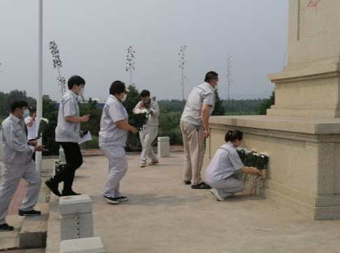 为庆祝中国共产党成立99周年,7月1日,唐山冀东启新水泥有限责任公司第四党支部组织党员开展了庆“七一”主题党日活动,党支部书记带领全体党员干部来到革命老区滦州市王店子镇干河草抗战纪念碑祭拜抗日英烈活动。