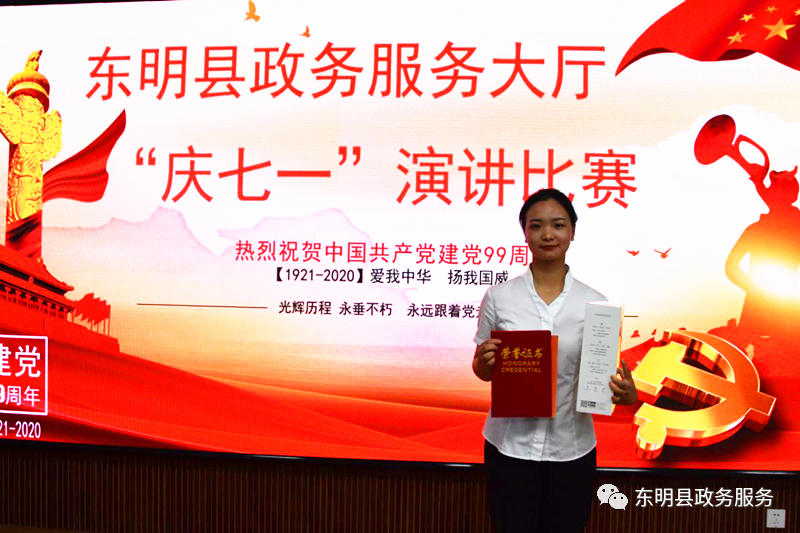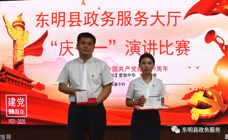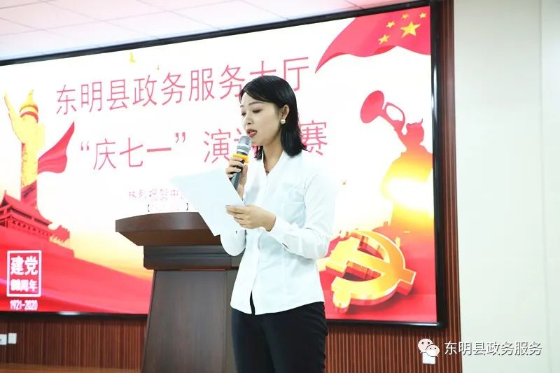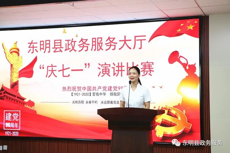 为热烈庆祝中国共产党诞辰九十九周年,弘扬革命传统,传承红色精神,东明县政务服务大厅在八楼会议室举办“庆七一”演讲比赛。