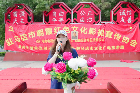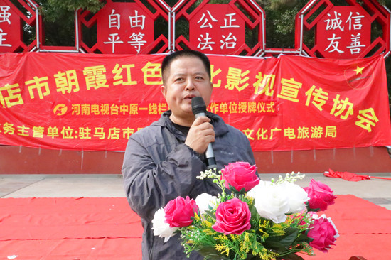 活动开始,举行了河南广播电视台《中原一线》栏目和驻马店市朝霞红色文化影视宣传协会战略合作单位授牌仪式。市朝霞红色文化影视宣传协会副会长:孙保田、秘书长谢秀荣秘书长为本次活动揭牌。