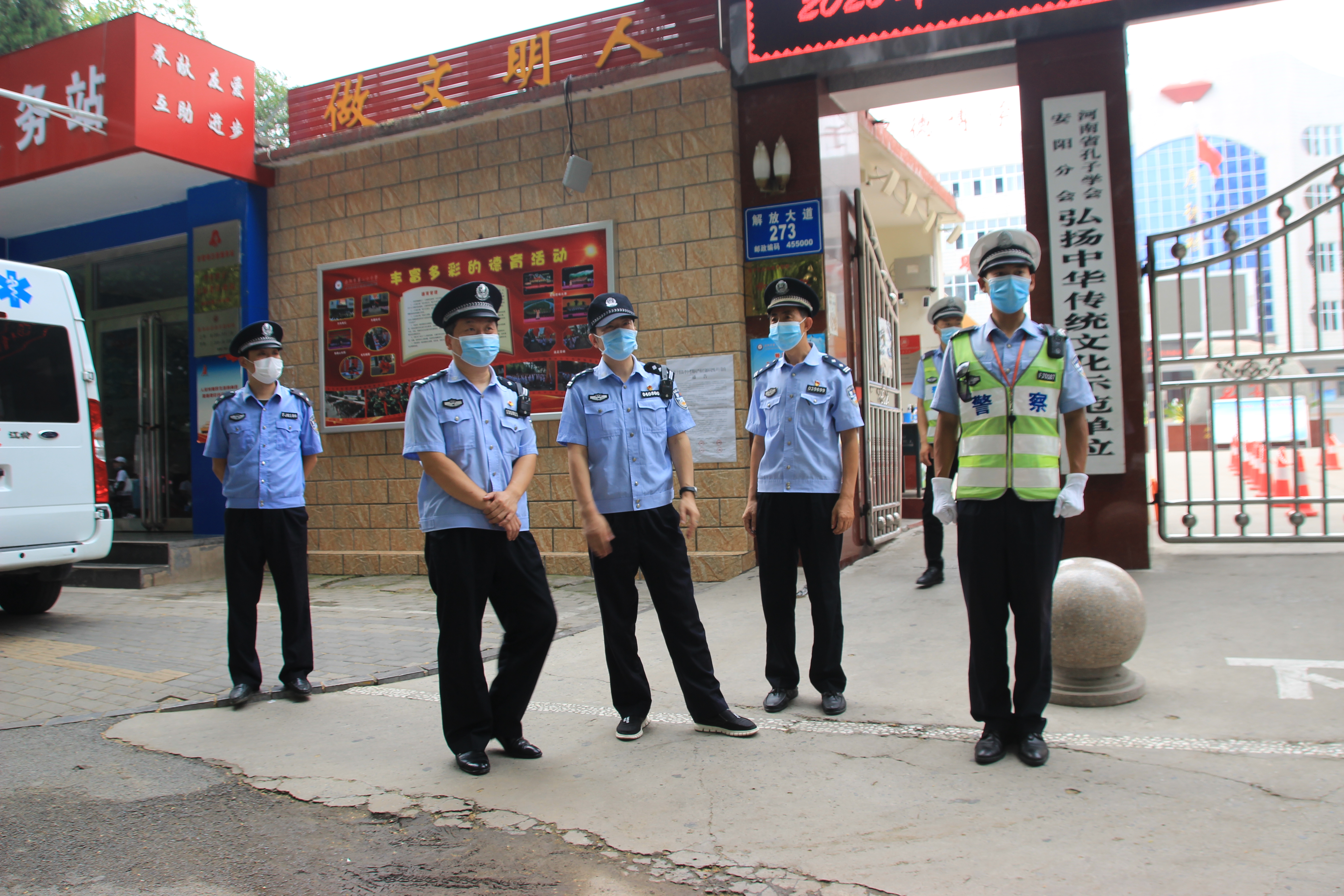 在高考安保工作中,安阳市文峰分局社区警务大队教导员王非尽心尽责,在全体执勤民警以高度的责任感和使命感,坚守岗位,文明执勤,做到考前准备到位、疫情防控到位、安全管理到位、应急处置到位,确保各项安保措施落实到位。