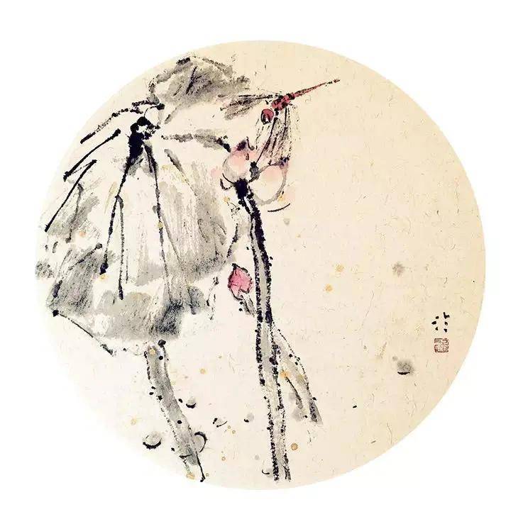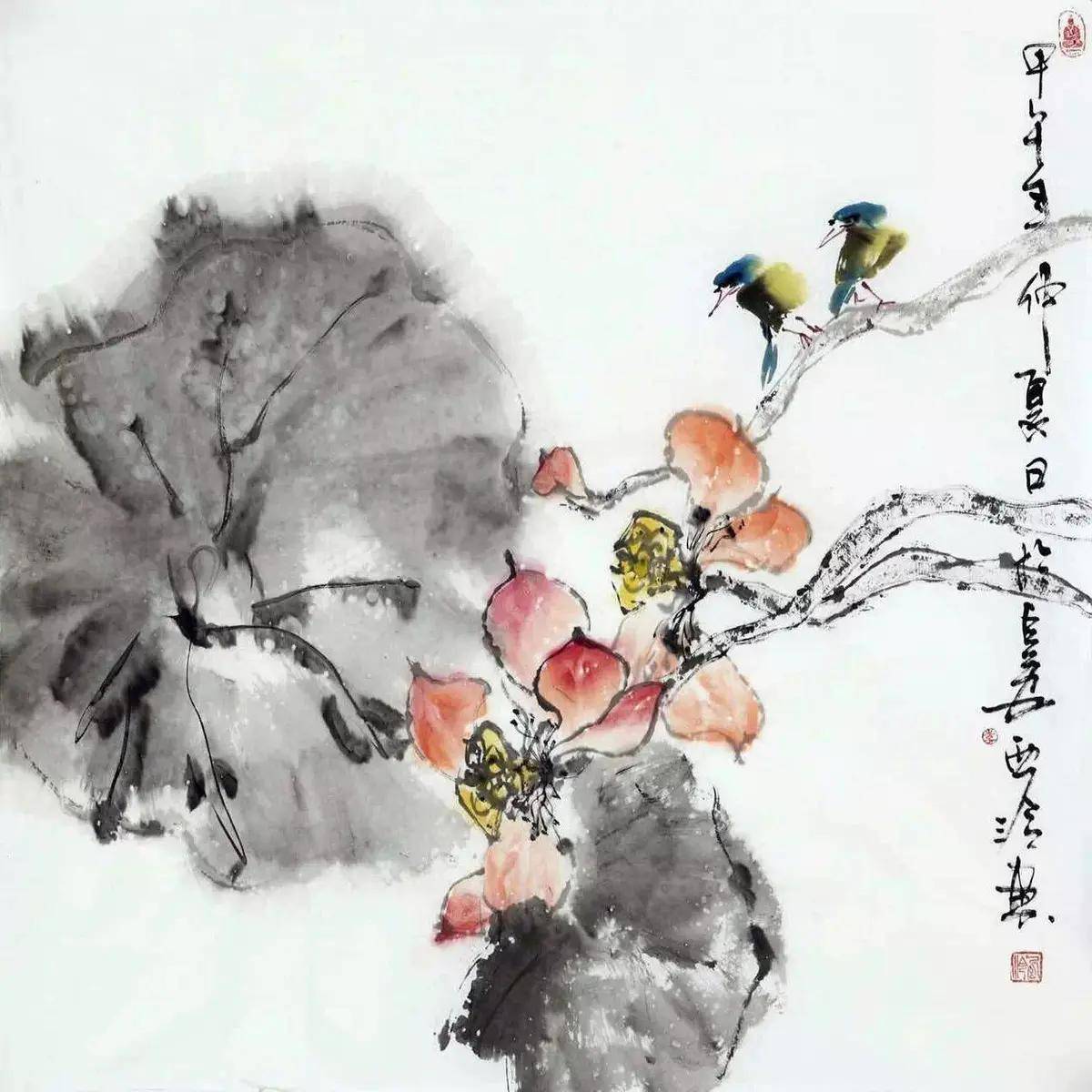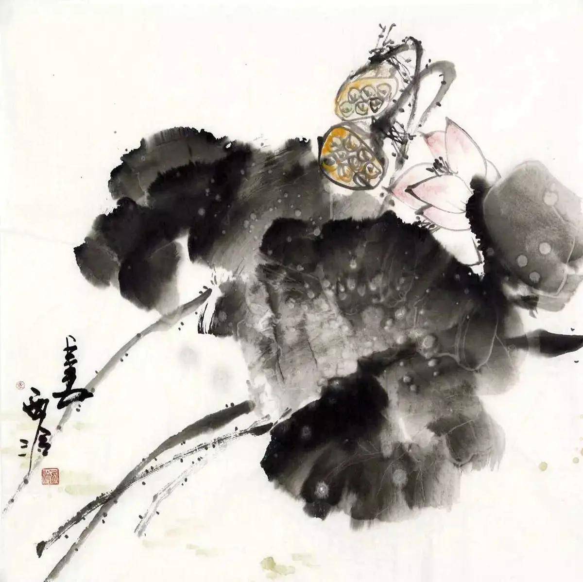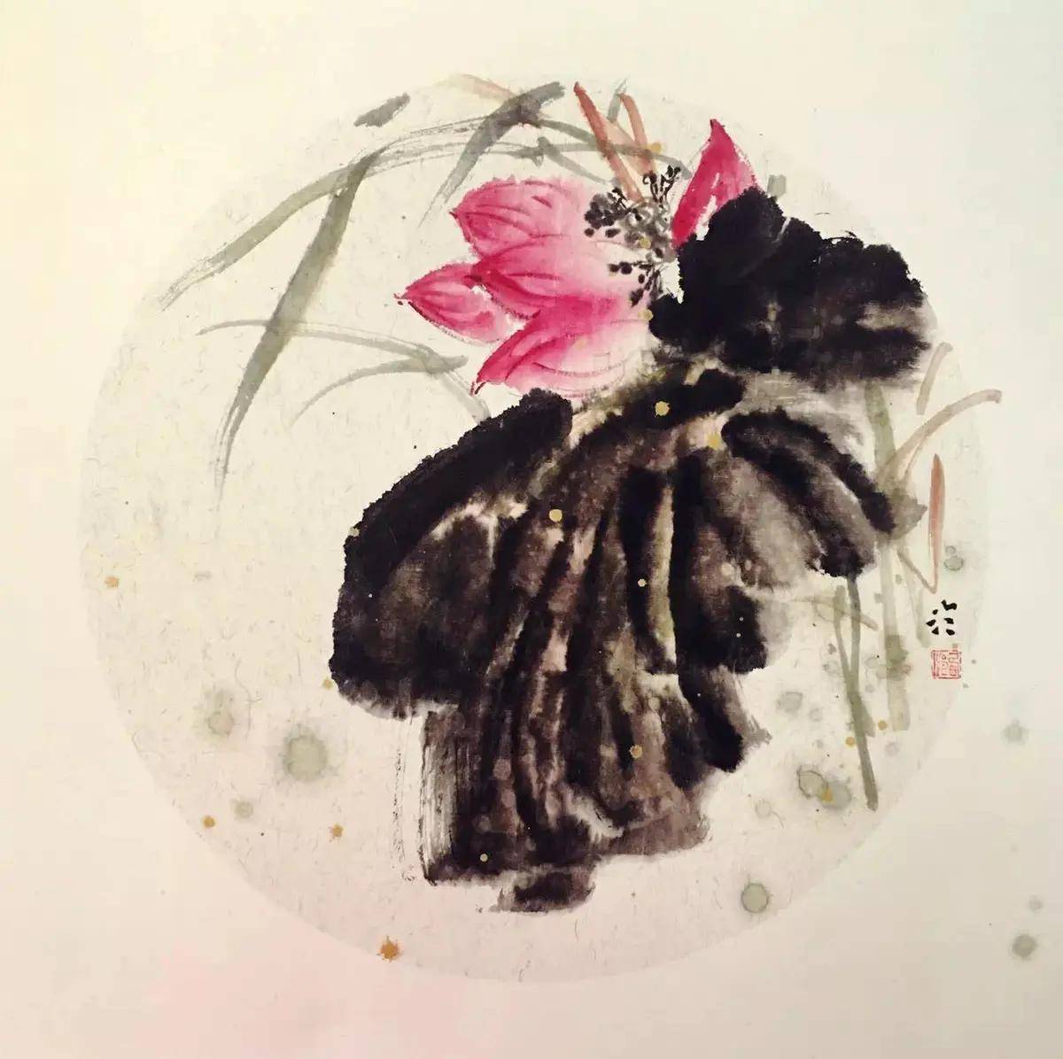 《荷与争秋》35x35cm 李西泠老师对艺术追求有自己独特的理解,她说:“琴乐是流淌的绘画,绘画是凝固的琴韵。我与琴乐画结缘正是因为这种传统文化相通、相映的艺理根植于我灵魂的深处。变换的构图和淡雅的色彩以及笔墨的妙趣,带给我的是对生命的感悟和心灵的愉悦!‘外师造化,中得心源’,我画荷,画它‘繁华之中求取安静’的禅意;我爱荷,爱它‘仙子风骨不落尘俗’的品格”。