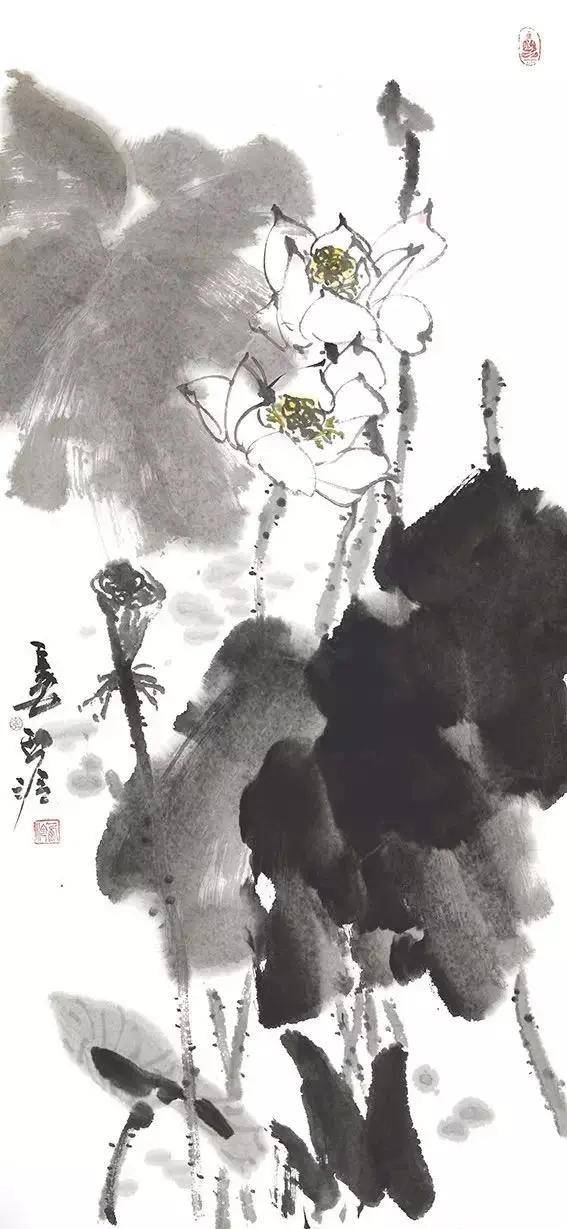 《风荷相依》68x68cm 自古以来画荷名家可谓是层出不穷。清代石涛的《墨荷图》,朱耷的《荷石图》、齐白石的《秋荷》、张大千的《彩荷》、石鲁的《荷趣》等名画,从不同角度描绘荷花的品格和融入荷文化的自我精神意识,荷花之韵,溢于“画”表。 周敦颐的《爱莲说》为我们塑造了一个出淤泥而不染,濯清涟而不妖,中通外直、不蔓不枝的君子形象;“一品清廉”,“莲”通“廉”,荷花寓意公正廉洁,是对清官的赞扬;“本固枝荣”,荷花枝繁叶茂,用荷花丛生比喻根基牢固,兴旺发达,世代绵延,家道昌盛。提笔研墨,荷花情深,青年画家李西泠老师不仅对荷花情有独钟,更将荷花的精髓深深融入进了笔墨中,让人爱不释手。