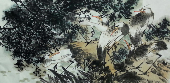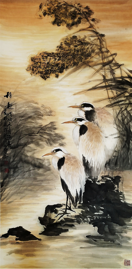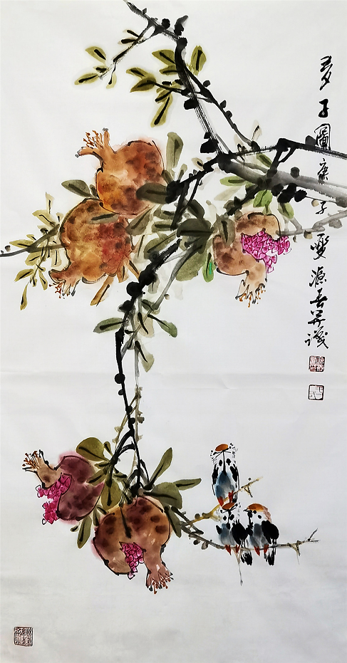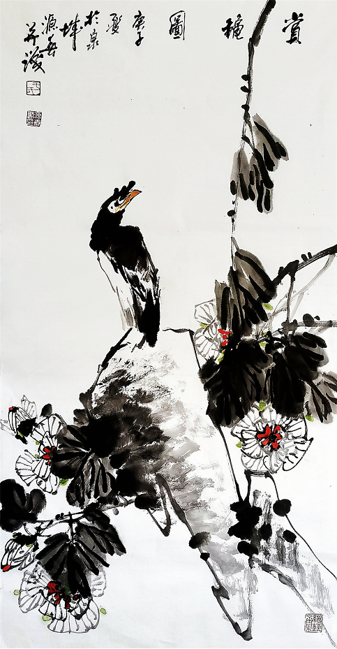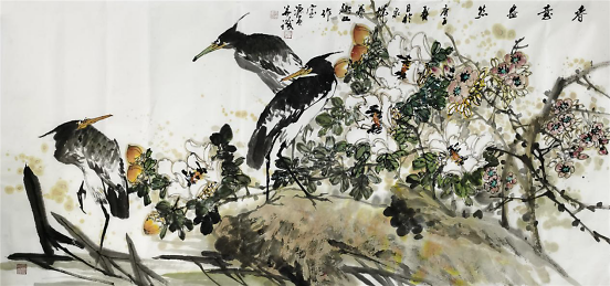 于源春先生的花鸟、山水、人物各科得以全面发展,与他对书画艺术孜孜以求的进取心和多年勤奋笔耕是分不开的,加之外在的交流学习,尤其是在北京研习书画的历练,使他的花鸟画水平有了质的飞跃,进入了一个崭新阶段,完成了由工笔到写意的转变。也许是受冯老先生的影响,于源春的创作方向后来也转向以工兼写和写意花鸟画为主。