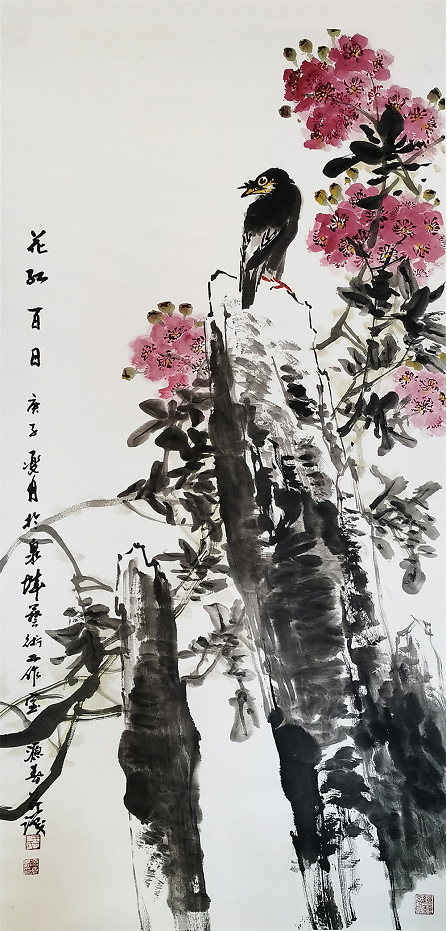 观于源春先生的作品,能真切的感受到他笔为心声,以物言情,以物言志、弘扬人文的精神,他的作品不机械模仿、临摹,而是以饱蘸情感的笔墨来描绘花、鸟世界的精彩。于源春先生以其精湛的绘画实践和独特的美学思想,用色典雅、造型严谨、构图别致,观之有神,赏之有韵,综观整体,神韵俱佳,在他的笔下展现的花鸟世界或清寂、或华贵,蕴含丰富,花木繁茂、藤树缠绕之间显露出蓬勃生机,为人们营造了一个清纯婉丽、赏心悦目、情趣盎然的花鸟世界,“墨法多变,气韵生动”是其作品的一大特色,他的花鸟画作品以一种浑然天机之趣,给人以强烈的艺术感染力,开拓了花鸟画一个新的审美领域,让我们欣赏到“百花争艳,百鸟争鸣,花有情,鸟有意”的精彩画面,在其苍、雄、秀、逸的作品特色中深刻感悟到画家卓而不群的风格气度。