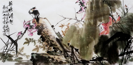 据于先生给记者介绍,经过我国历代书画家在继承传统的基础上不断的创新,中国花鸟画日渐成熟,快速发展,走出了传统,走进了现代,开创了独特的艺术表现形式,成为延续千年、底蕴深厚的民族瑰宝。 于先生给记者谈到,欣赏花鸟画,从大的方面讲首先要看构图,其次是看造型、赭色。书画作品讲究落笔有声、收放自如,运笔的轻重缓急、笔墨的浓淡厚薄、以及花鸟画中很重要的一点:动与静、色与墨、景与色的结合都要恰到好处,协调而不唐突。花鸟画是来源于自然、表现自然的艺术作品,一定要给观者以真实、生动,妙趣横生、生机盎然的感觉。