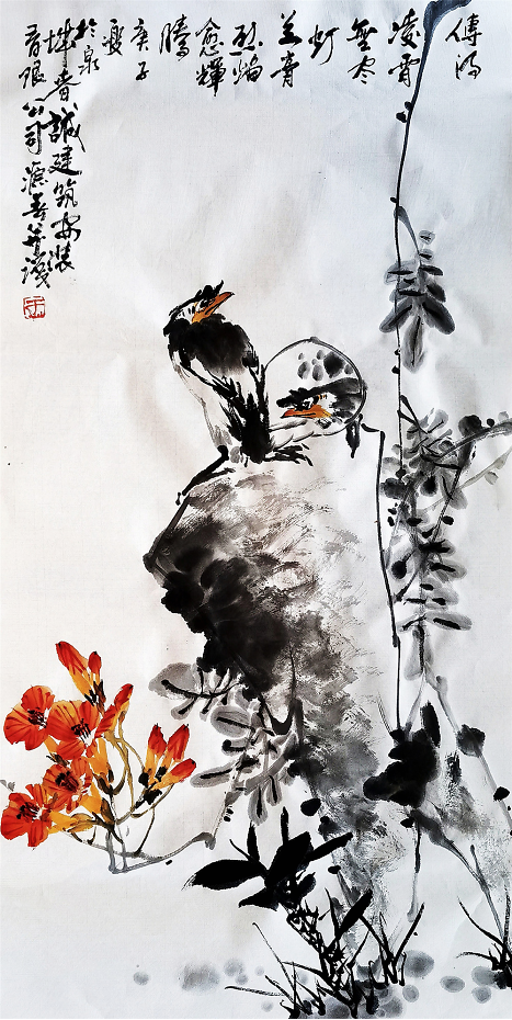 花争艳鸟争鸣 ——画家于源春的花鸟世界 于源春先生是我国家著名花鸟画家。山东莱阳市人。于源春身上有着典型的山东人的性格,为人质朴率真,画风格调高雅,是一位不可多得的写意花鸟画高手。系国家—级美术师,国礼艺术家,山东艺术设计学院副院长,教授,国画系高研班、研究生院导师。