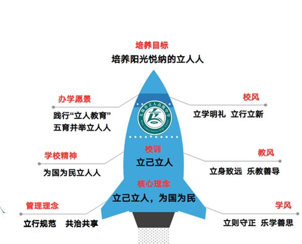 (全国地理教学先进集体) 学校始于1946年荣毅仁先生出资创办“立人中学”,并学校题词“立己立人,为国为民”(学校办学核心理念)。学校以“立己立人”为校训,努力打造“为国为民立人人”的学校精神,构建以“立人教育”为核心,由“立行规范的管理文化、立身致远的教师文化、立则守正的学生文化、立学实践的课堂文化、立趣多元的课程文化”等组成的学校文化体系。学校秉持“阳光悦纳,优选适合”的课程设选宗旨,立足“讲道德、有智慧、健身心、会审美、能实践”为课程目标,架构“因能分层、因志分类、因趣分群”的“选-适-优”课程体系,努力培养“阳光悦纳的立人人”(培养目标)。