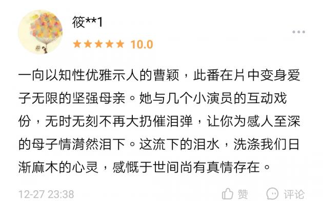 《妈妈我想你》温情回归 适合疫情后情感心灵的修复 应该说,自从上世纪八十年代末台湾电影《妈妈再爱我一次》后,再没有一部关于母爱体裁的电影,会像《妈妈我想你》如此感人,如此直戳内心深处。在动辄商业片、喜剧片充斥的今天,《妈妈我想你》更像是一股清流,净化着我们的心灵、洗涤着我们的灵魂;亦像是一股清流,暖彻我们的心扉。 电影《妈妈我想你》春节前进行了一些点映和路演场次,几乎每一场,观众都哭得稀里哗啦,所以这次,强烈建议大家一定带足了纸巾去观影,纸巾不够用,别怪我们没提醒! 影片由曹颖、马柏全主演,九孔、汤潮等倾情加盟,影片根据真实故事改编,讲述了在经历了丈夫去世等一连串的家庭变故后,苏美琴(曹颖饰)为了养活三个孩子,外出打工,不幸失联,三个孩子历经艰险寻找妈妈、最终母子团聚的故事。影片泪点满满,在春节前的点映过程中好评如潮。